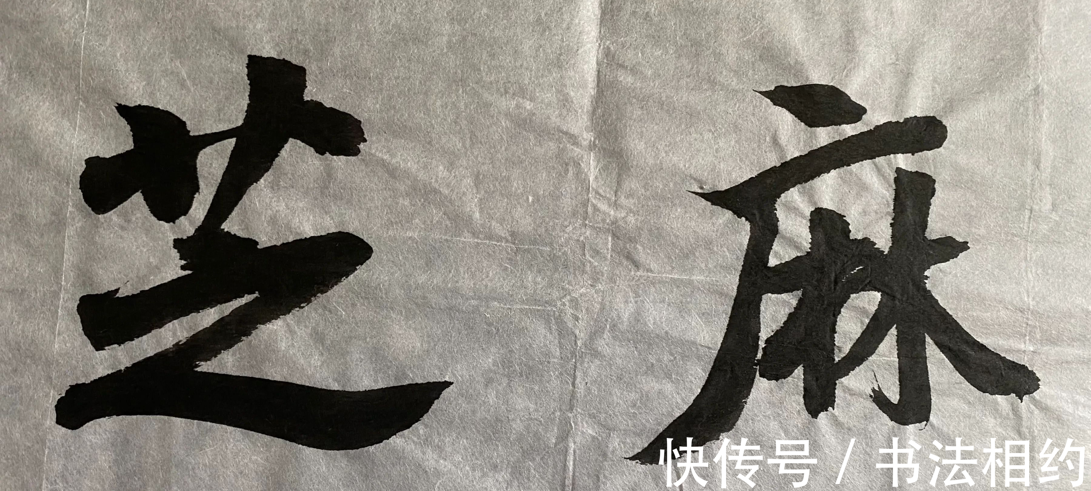 “芝”字点画少,但是却写出了飘逸之感,正是这种感觉,使得这个字才更加有“姿色”,造型别致,突出了结构之美的同时,也突出了造型之妙,有是草字头的横笔,两端浓重,中间纤细,写出了别致的感觉,而且下面的“之”,显得非常稳重,颇有“大王”范,而第二个字“麻”字的撇笔最有姿态,尤其是伸展得非常长,不仅舒展,而且颇有美感,牢牢地抱住里面的内容,“街”字虽然点画多,但是却没有累赘之感,而且让人感到更加亲切,而最后两个字在姿态上,形成了一种呼应的姿态,美感十足,从他所题写的这五个字上看,水平绝对非同一般。